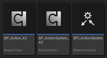 The Action System includes three assets, two Actor Components and a Blueprint Interface.