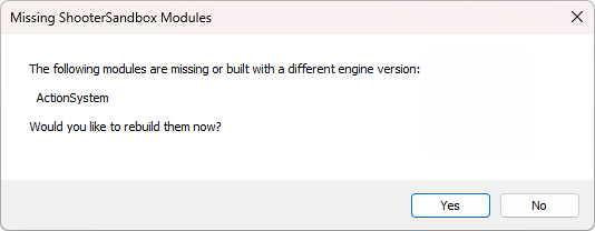 When you open your project for the first time after adding the plugin it will prompt you to rebuild the module. This is expected behavior and shouldn’t take long as the Action System uses minimal C++.