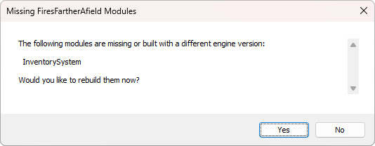When you open your project for the first time after adding the plugin it will prompt you to rebuild the module. This is expected behavior and shouldn’t take long as the Inventory System uses minimal C++.